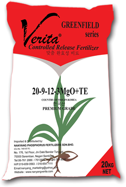 Verita Greenfield Controlled Release Fertilizer is in granular form. Verita Greenfield CRF controls release of nutrient providing better constant nutrient intake of the plant. Verita Greenfield CRF provides better plant uptake over a period of time and serves as a good choice to reduce leaching and surface run-off.